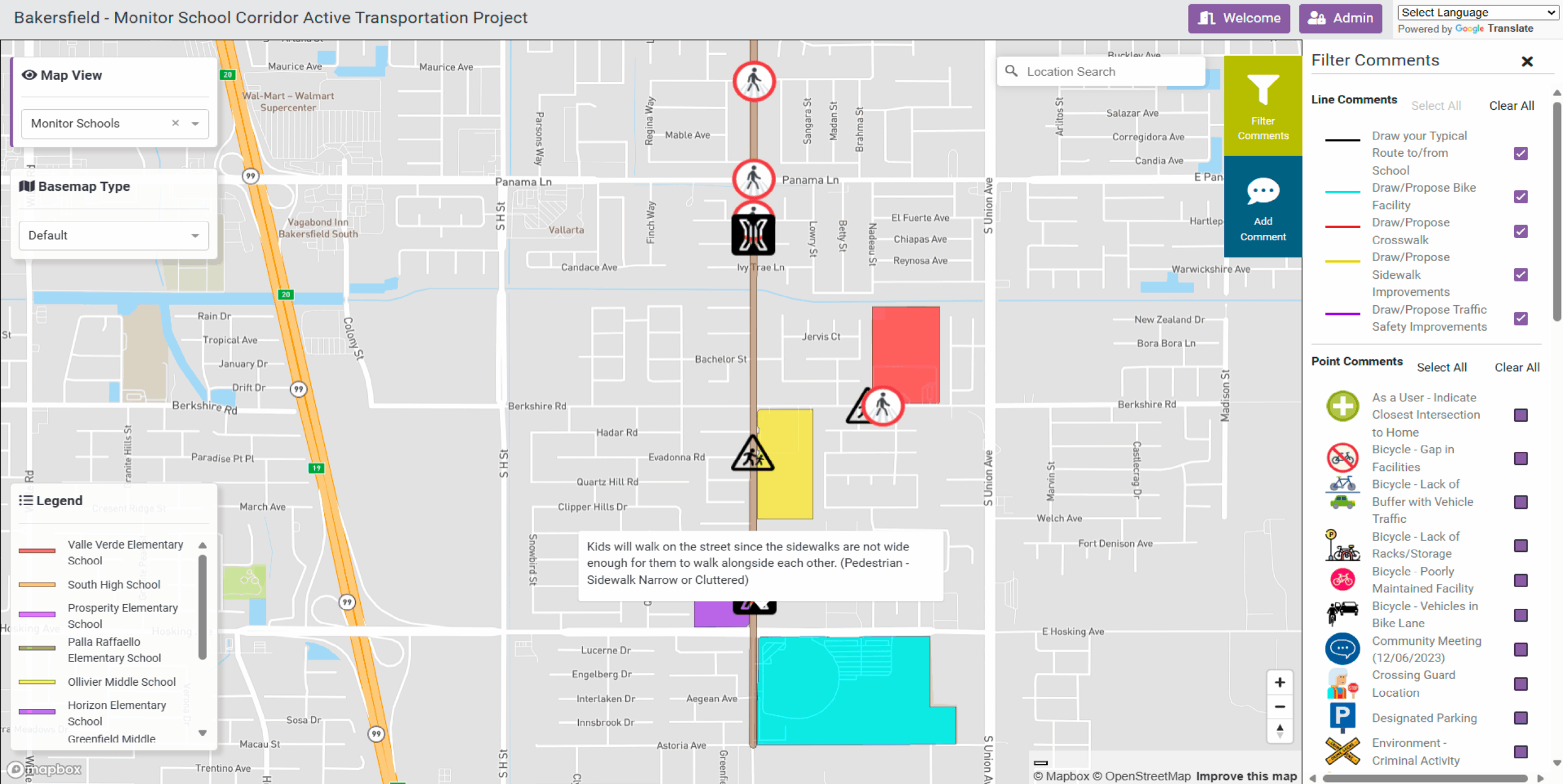 Bakersfield needed an accessible, scalable way to gather and organize feedback from diverse stakeholders along a complex, school-heavy corridor.